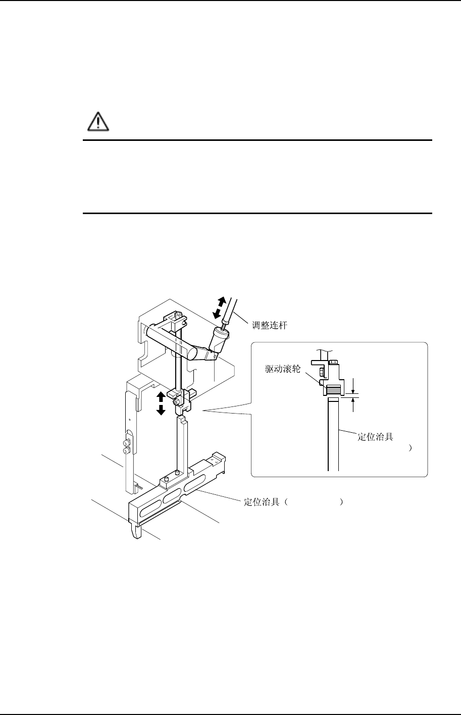 6. 转动调整连杆,将定位治具的上端和驱动滚轮之间的间隙调整为 0.5mm。