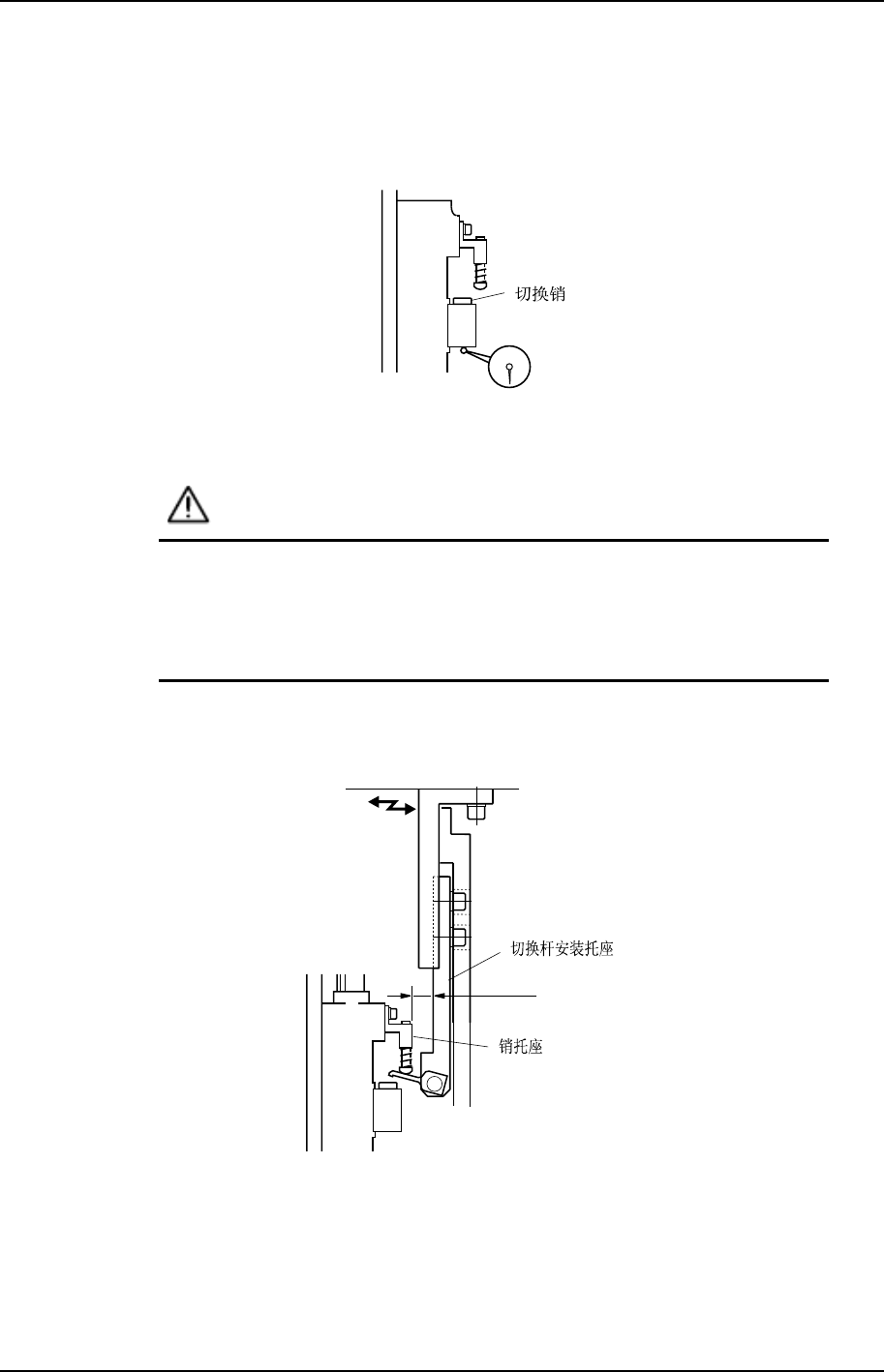 4. 将销与切换杆之间的间隙调整到 0.6mm。此调整通过上下移动切换杆托座进行。