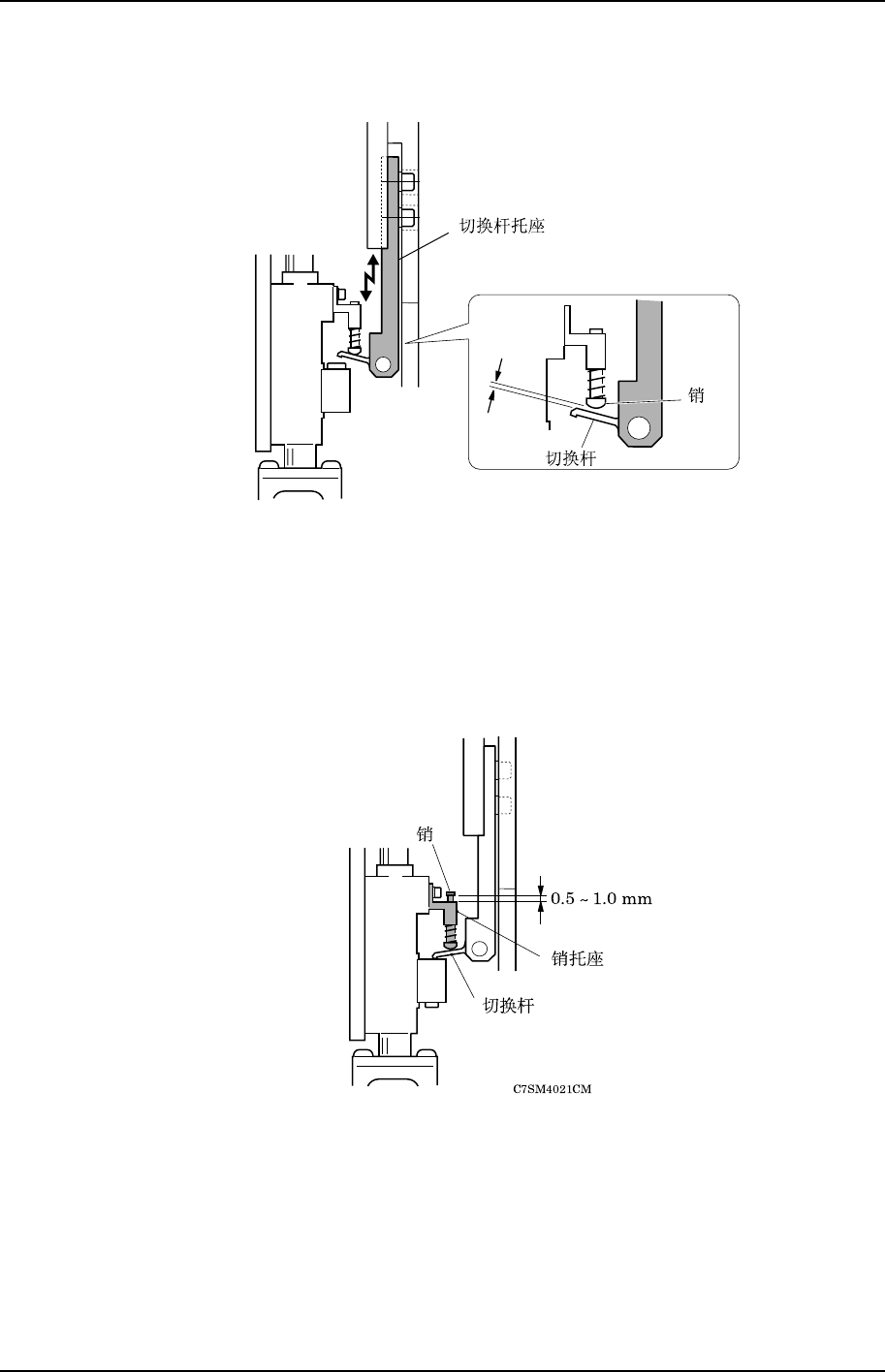 7. 确认被切换杆顶起的销与销托座的间隙为 0.5~1.0mm。