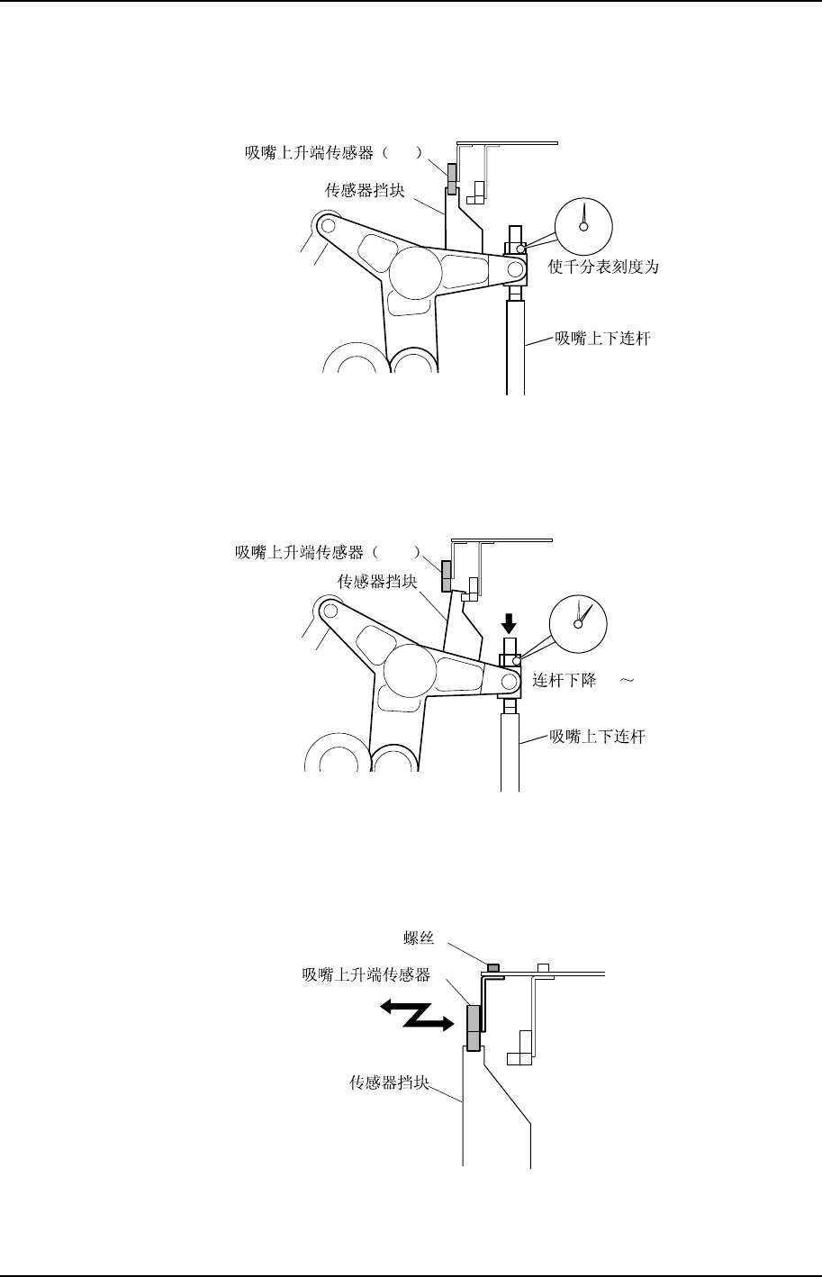 ) 调整完吸嘴上升端传感器后,紧接着调整下降端传感器时,为了避免千分表与凸轮杆的碰撞,
