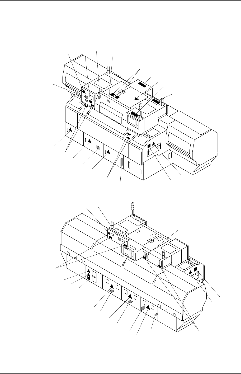 在安全标记上表示有操作机器时必须注意的事项、机器上所贴的安全标记按下图所示。请认