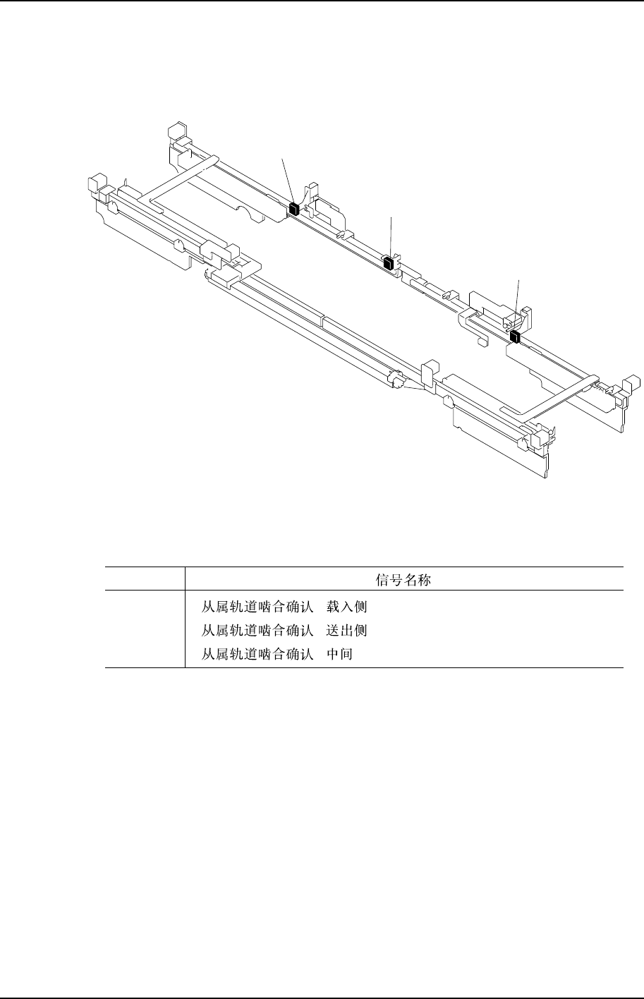第 3 章 传感器配置图 第 1 部 CP- 733 E/74 3ME/743 E 机械手册 1-3-4 Edition 2. 0 送出侧搬运轨道 送出侧搬运轨道 送出侧搬运轨道 送出侧搬运轨道 X0D0 X0D1 X0C7 X0CA X0C9 X0C4 X0C5 X0CB C7SM1024S C7SM1T04S X0C4 X0C5 X0C7 X0C9 X0CA X0CB X0D0 X0D1 2 2 1 2 1 2 Sensor No.