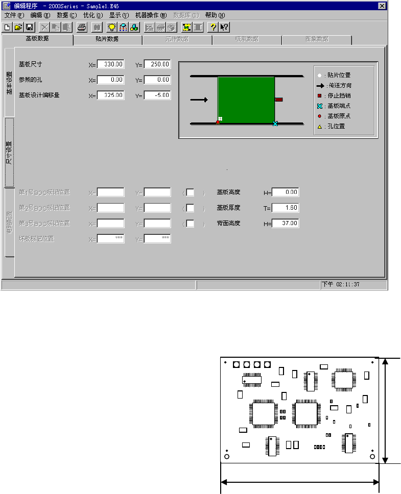 在KE2000系列的生产程序中,用坐标来表示基板上的元件及标记的位置。