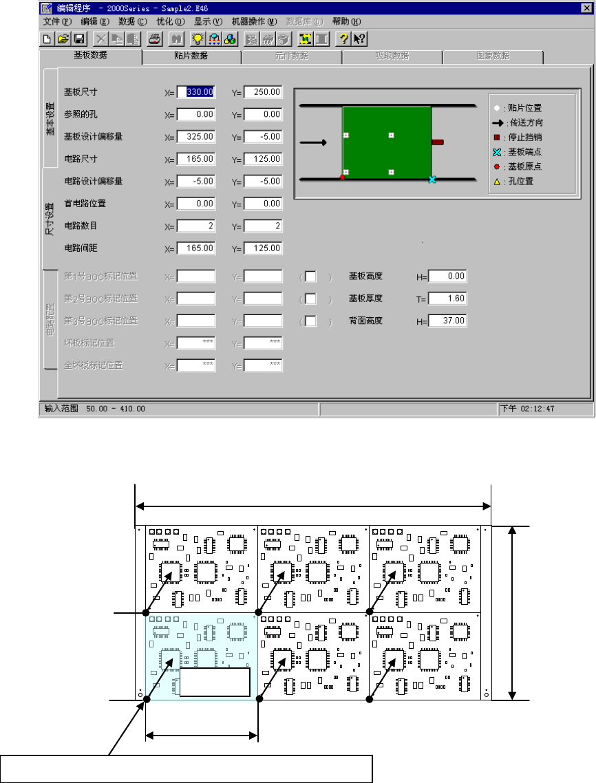 路进行贴片的原点),输入电路数和电路间距的信息。由此,将用贴片数据所制作的基准电路