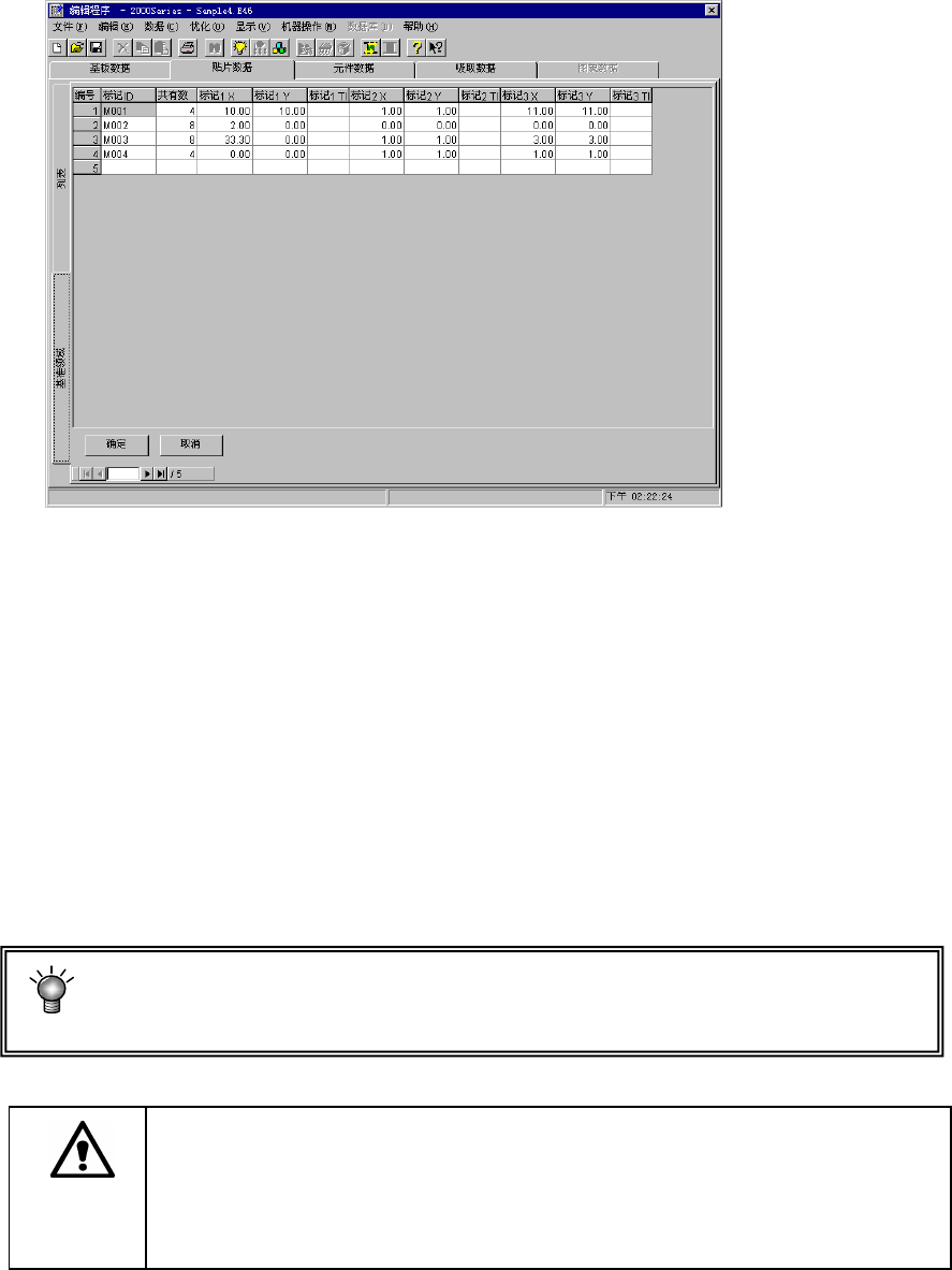 输入贴片位置(X、Y)。输入的方法有键盘数值输入和HOD的示教输入。