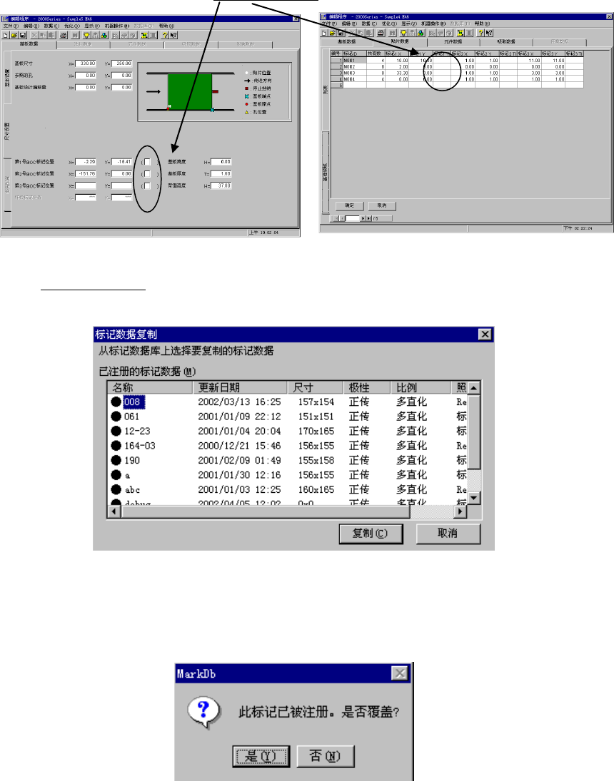 将标记数据库中所登录的标记数据作为BOC标记或区域基准标记复制到数据中的功能。