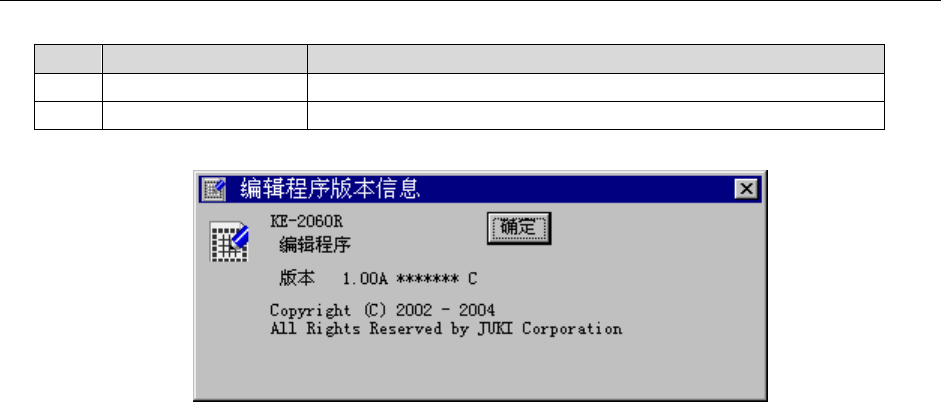 第 4 章 生产程序制作 4-5-6 帮助 No. 帮助组 说明 1 帮助 起动帮助后,显 示程序编 辑帮助。 2 版本信息 显示关于程序编 辑的信息 。 图 4-5-50 版本示例 4- 142