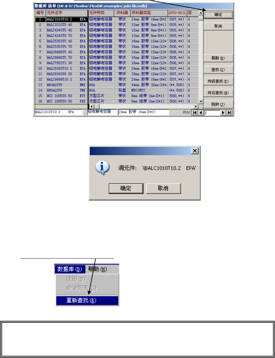 元件数据,并注册到生产程序的元件数据中。一旦执行“重新查找”,可对