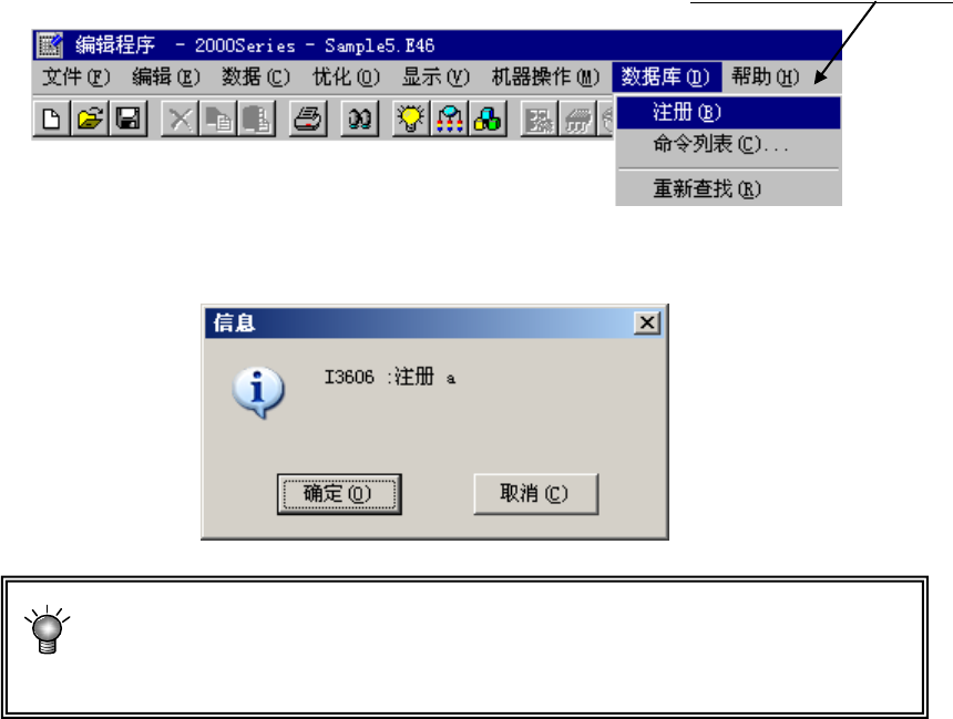 2) 选择要注册的元件(如果是清单表画面,请单击元件所在行)后,单击“数据库”/“注册”。