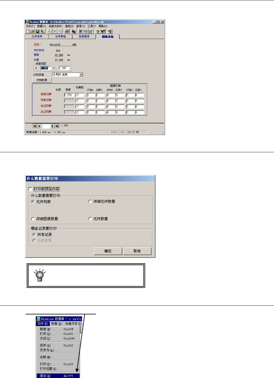 第 5 章 其它 功能 5-1-1-7 制作图像数据 单击“图像表格”标签后,可显示制作图像数据的画面。 关于制作方法,请参见“ 4-3- 7 图像数据”。 5-1-1-8 打印 从菜单栏中单击“文件” /“ 打印”后,显示如下画面。 设置打印条件,单击“确定”后,即可打印。 打印需要安装打印机驱动程序。 5-1-1-9 退出数据库 单击 “ 文件” /“ 退出”。 5-25