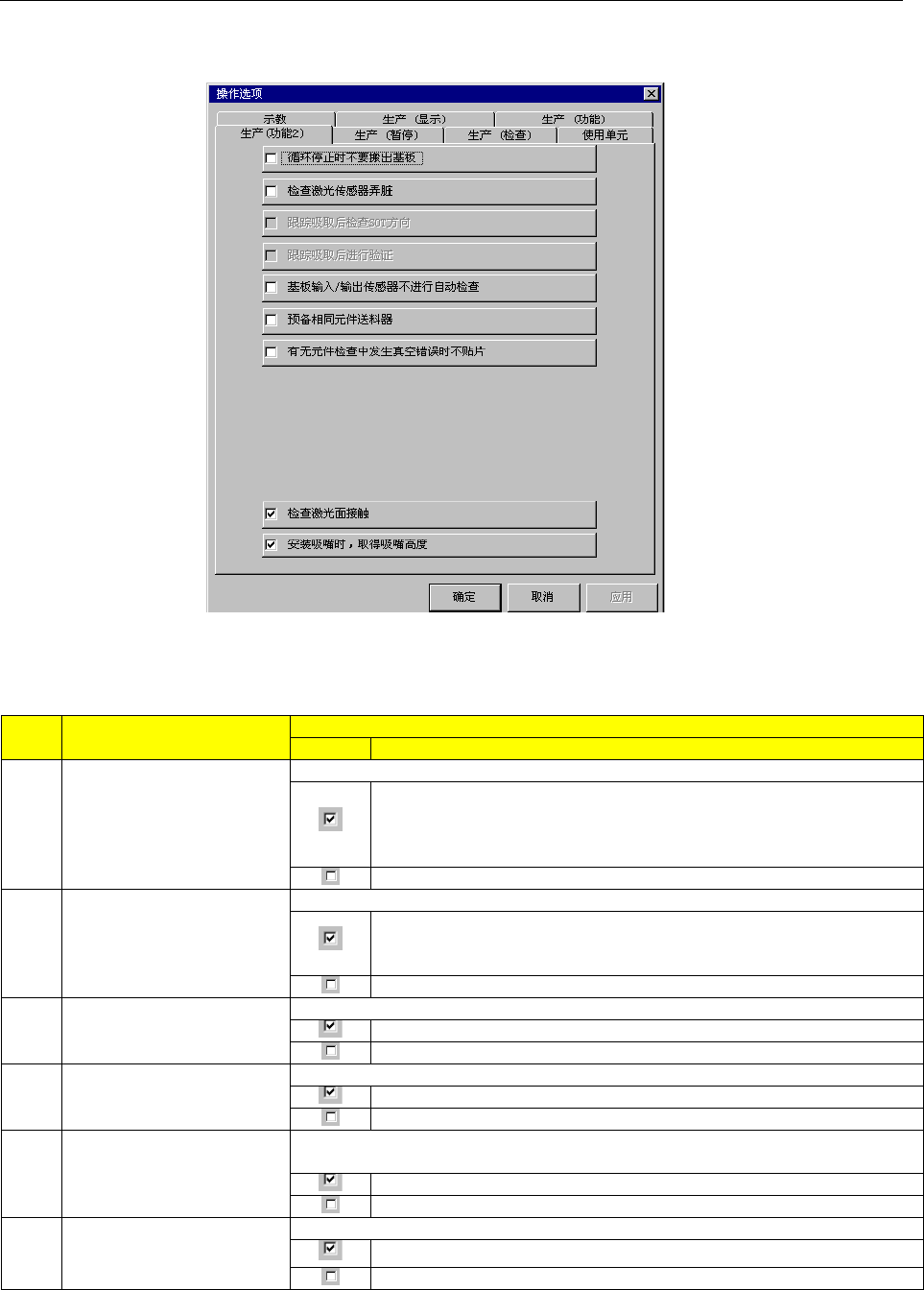 第 5 章 其它 功能 7 有无元件检查中发生真 空错误时不贴片 设置在检查有无元件时对真空检查判 定为 “无元件” 、 激光检查判定为 “有 元件”的元件进行的贴片动作。 ·吸取时,对真空检查判定为“无元件 ” 、激光检查判定为“有元 件”的,根据元件废弃的设置废弃元 件,不进行贴片。 ·在 贴片前和图像识别前 (仅限于图像定心) 的真空检查判定为 “无 元件” 的, 不进行激光检查, 而根据元件废弃的设置废弃元件, 不 进行贴片。 …