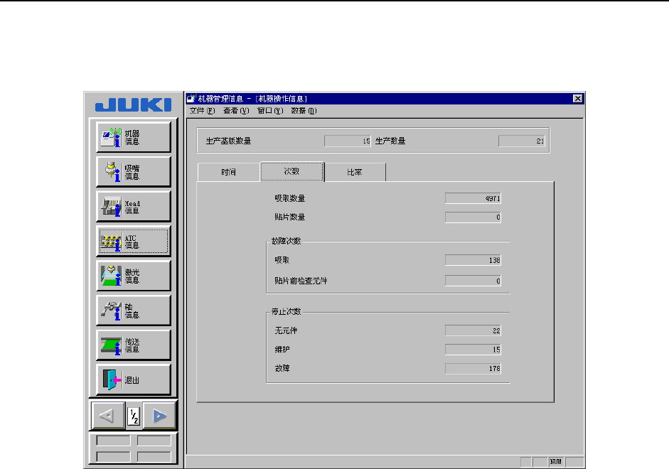 显示机器的运行时间(基板生产时间累计等)、吸嘴拆装次数等设备固有的运行信息。