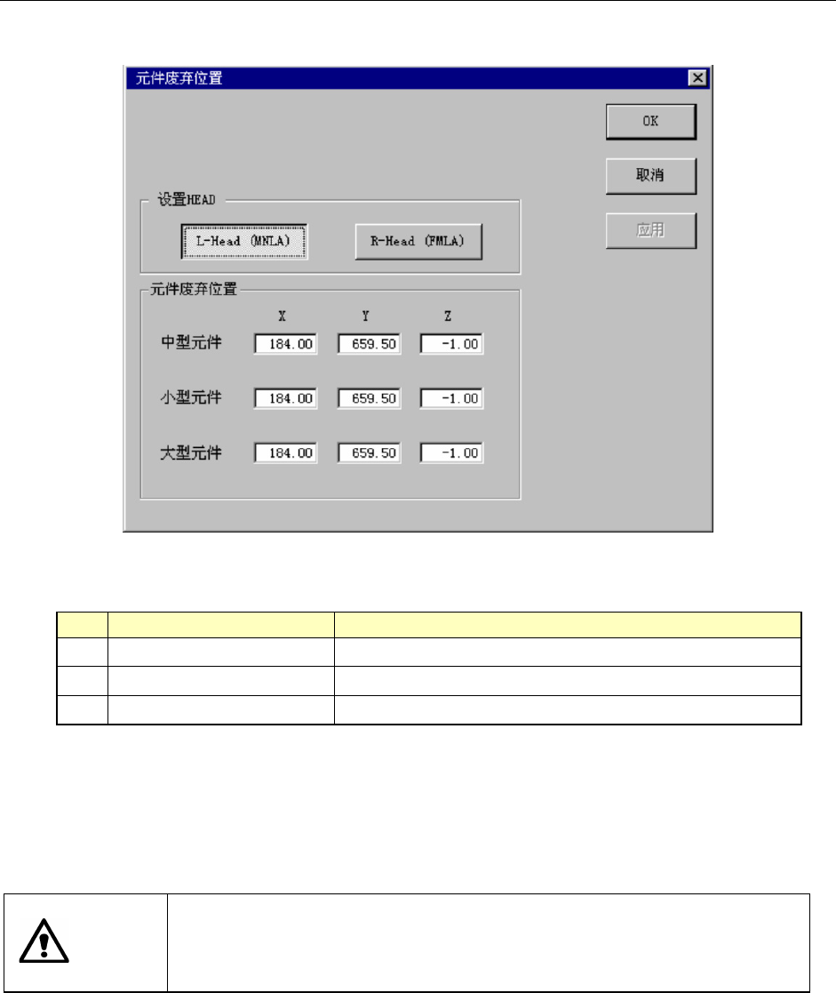 选择元件废弃位置,则显示下图所示的元件废弃位置设置画面。