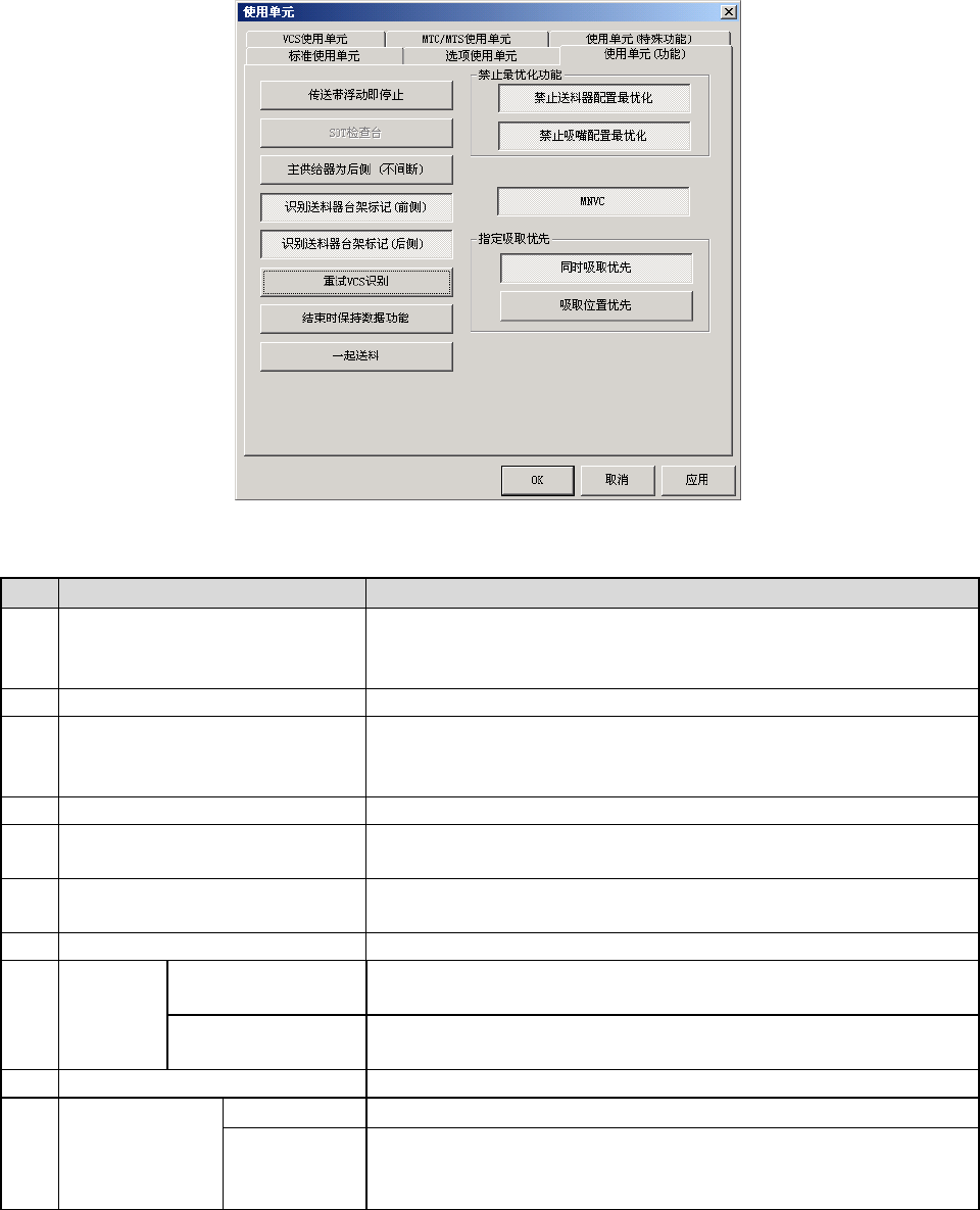选择“使用单元(功能)”标签,则显示如下图的使用单元(功能)设置画面。