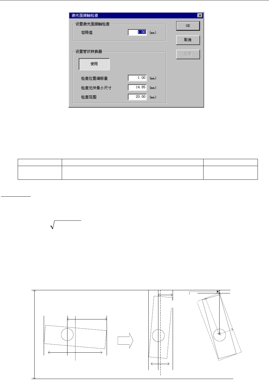可以设定激光面接触检查时的容限值。