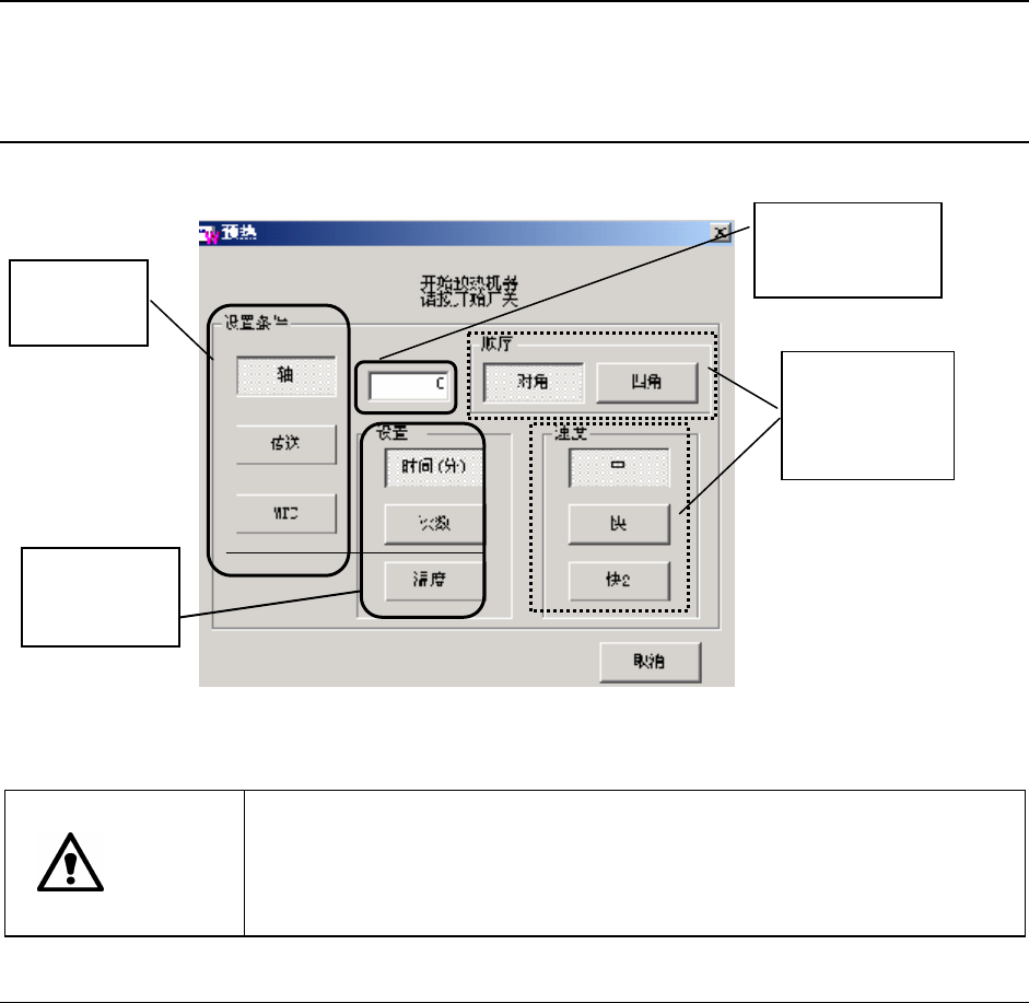 从主画面的菜单栏中选择“维护”→“预热”后,显示下图所示的预热初始化画面的窗口,