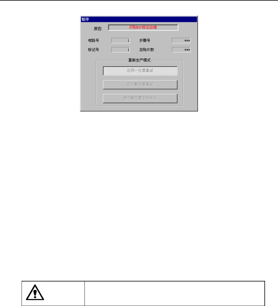 在BOC标记、区域基准标记的识别中发生识别错误,则显示如下的画面,并进入暂停状态。