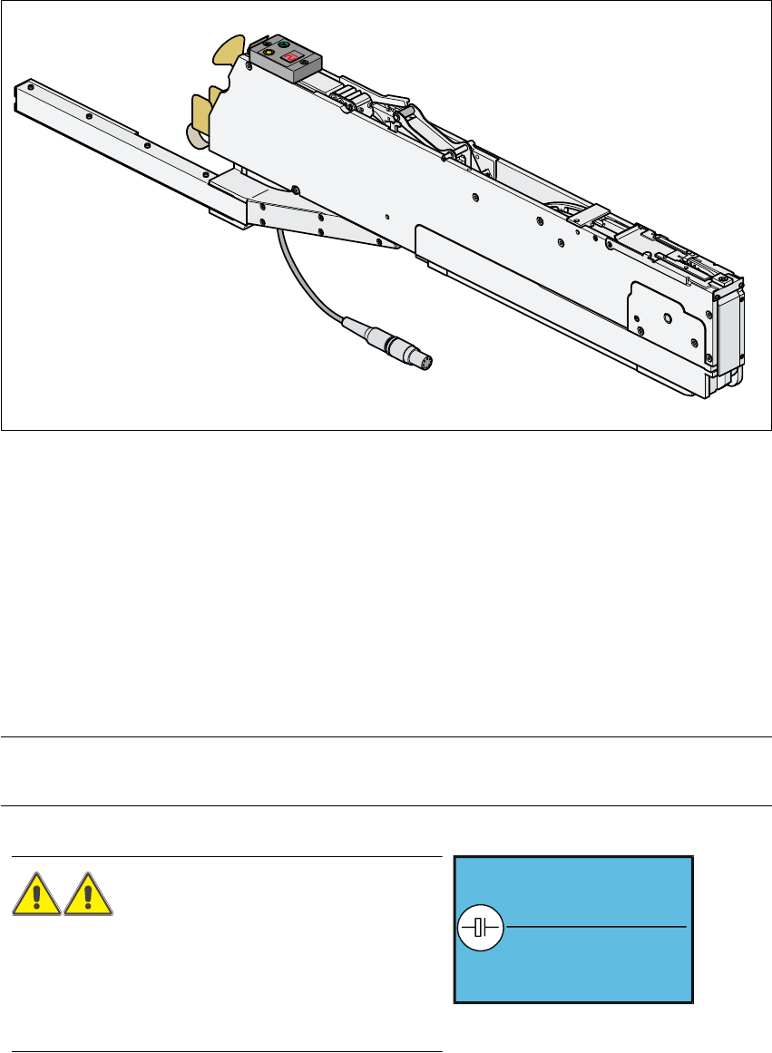 Ennél a szállítónál a hevedertámasz az átvételi helyen állítható a megfelelő magasságra. 6