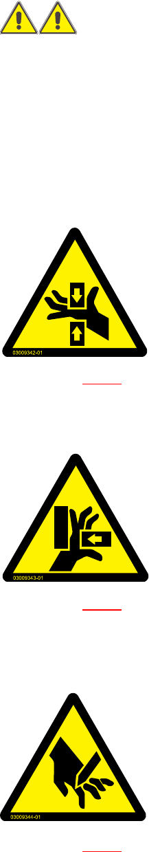 2.2 - 3 ábra W205 figyelmeztető tábla a hevederhulladék-csúszdánál