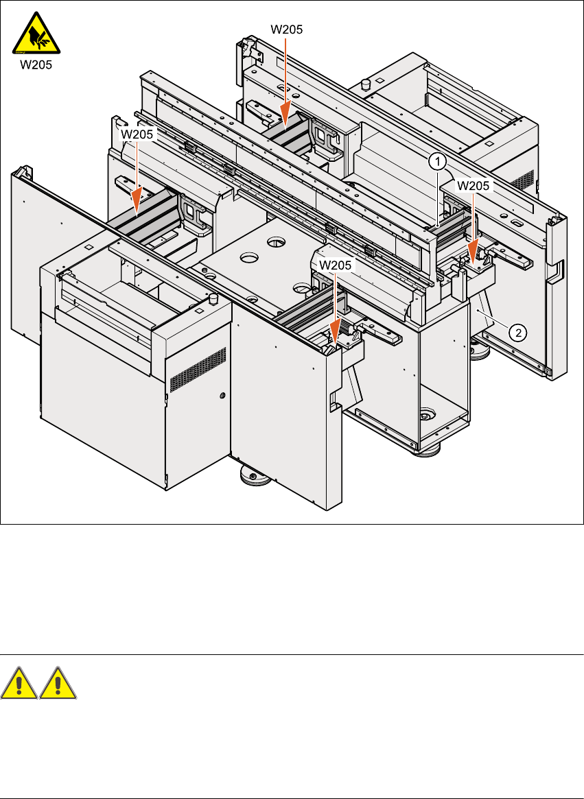 2.2.3.1 W205 figyelmeztető tábla a hevedervágó készülék alatti kereszttartón