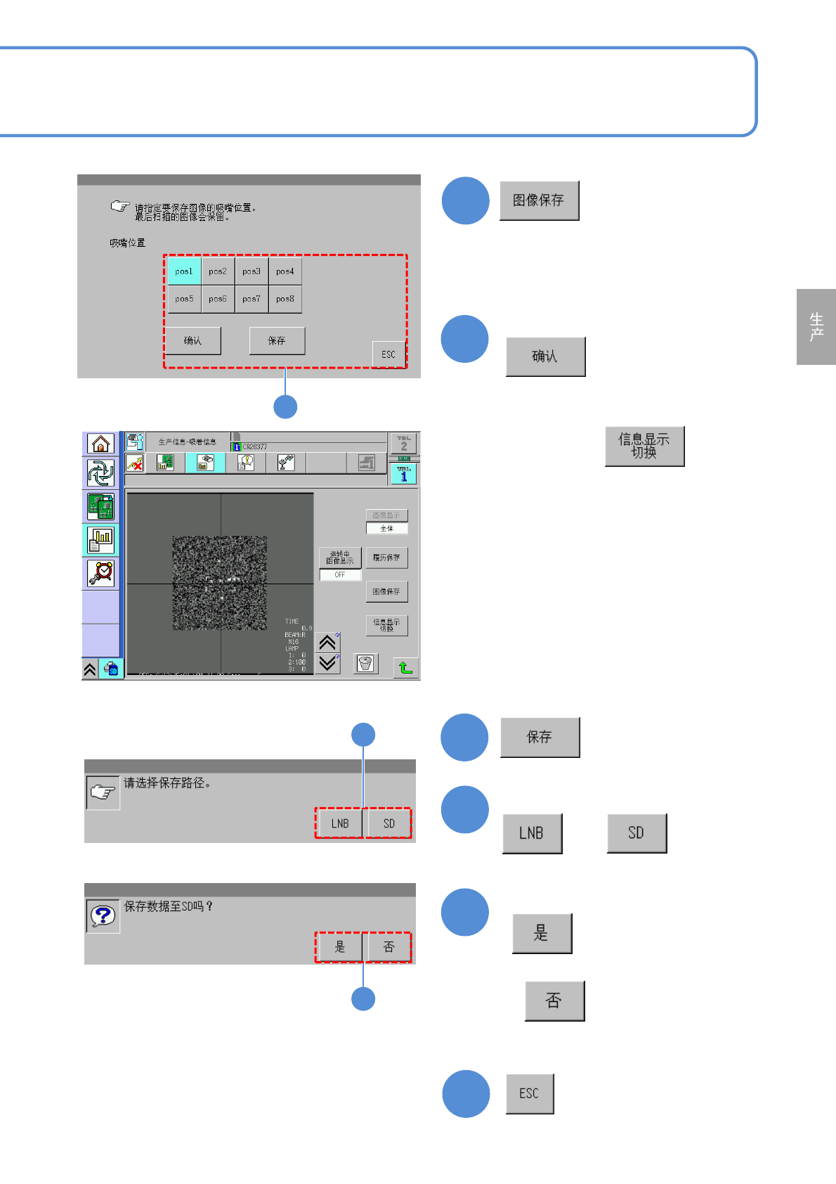 NPM- TT2 EJM1EC-MB-03O-0 2 3-2-3 -3 生产信息 操作篇 3-2-3 供料器的吸着信息 2 4 图像被清除。 切换前后的图像。 返回原来画面。 全体 指定 5 6 确认提示 或者 确认提示 ■不保存数据时 5 6 3 选择图像显示 ●所选择的工作台的所有图像按照最 新 顺序显示。 : 显示所有图像。 : 显示在前画面指定的供 料器地址的图像。 ( 将保存错误履历 ) : 显示全部的图像 显示运转中的图像 …
