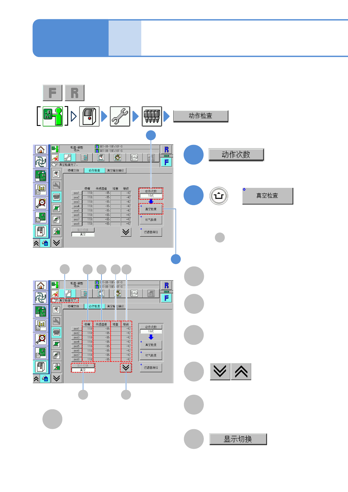 (显示各吸嘴的真空检查的结果)