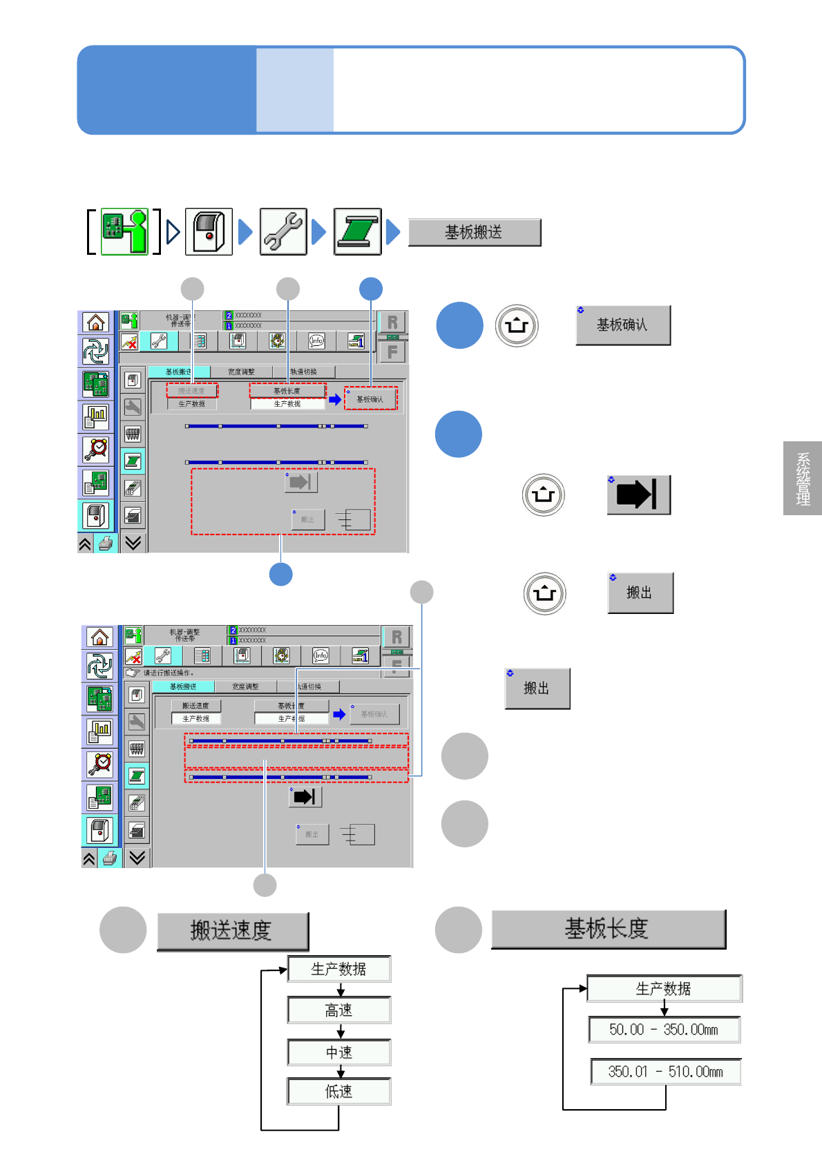 NPM- TT2 EJM1EC-MB-05 O-05 单元调整 基板的传送确认 5-2-8 选择基板长度。 ( 传送带上有基板时,会显示位置 ) 对基板的传送动作是否正常进行确认 。 ●使用双轨传送带时,事先选择轨道 。 1 B + 选择传送速度。 A ■没有来自后工序的要求信号而传出 时 成为有效。 ( 基板被传送到选择位置 ) 2 + 传送 ■传入到设备内时 + ■传出到设备外时 操作篇 5-2-8 A 1 B 2 C D C D …