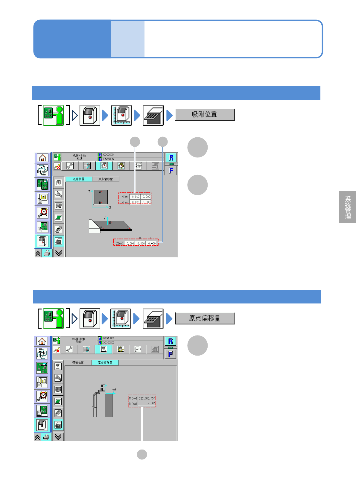 确认托盘供料器的吸着位置的偏移值、TP轴和TL轴的原点偏移值。