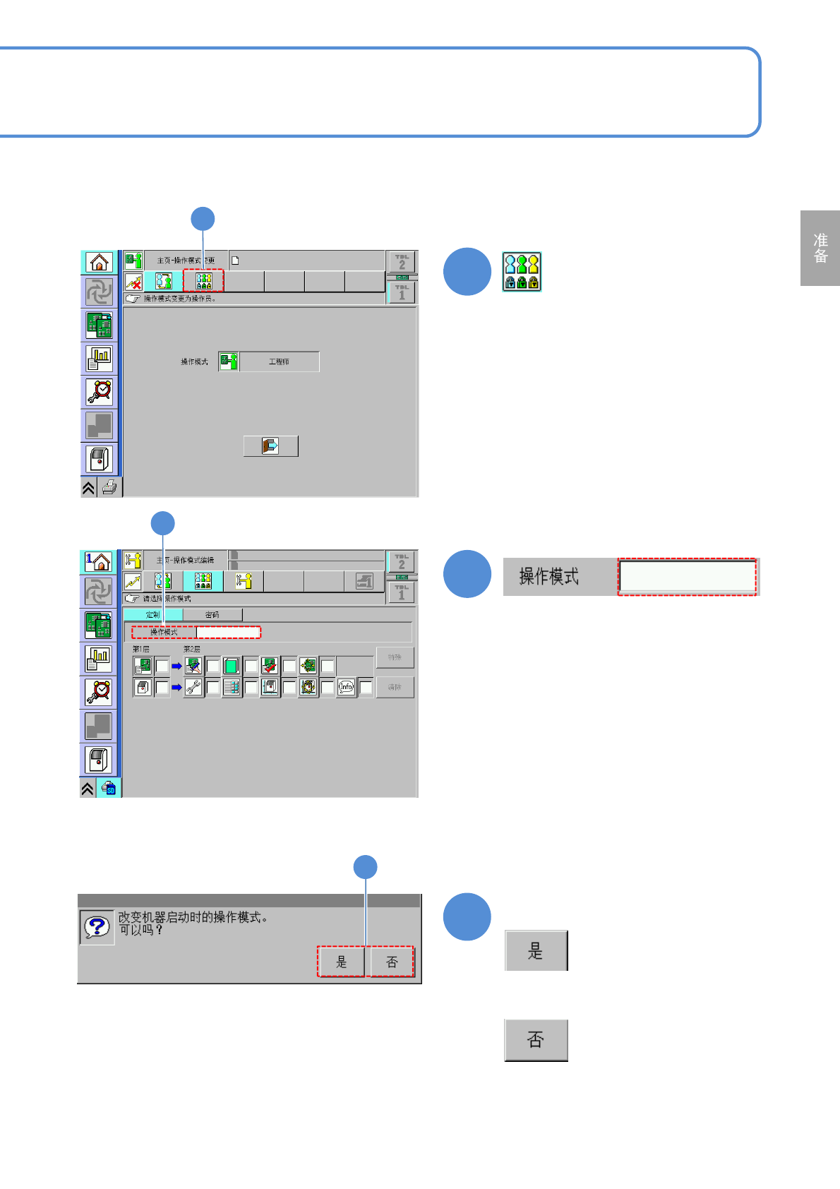 NPM- TT2 EJM1EC-MB-02O-0 4 2-1-3 -2 5 6 5 6 7 确认提示 ■不切换为操作模式时 7 轻触空白栏