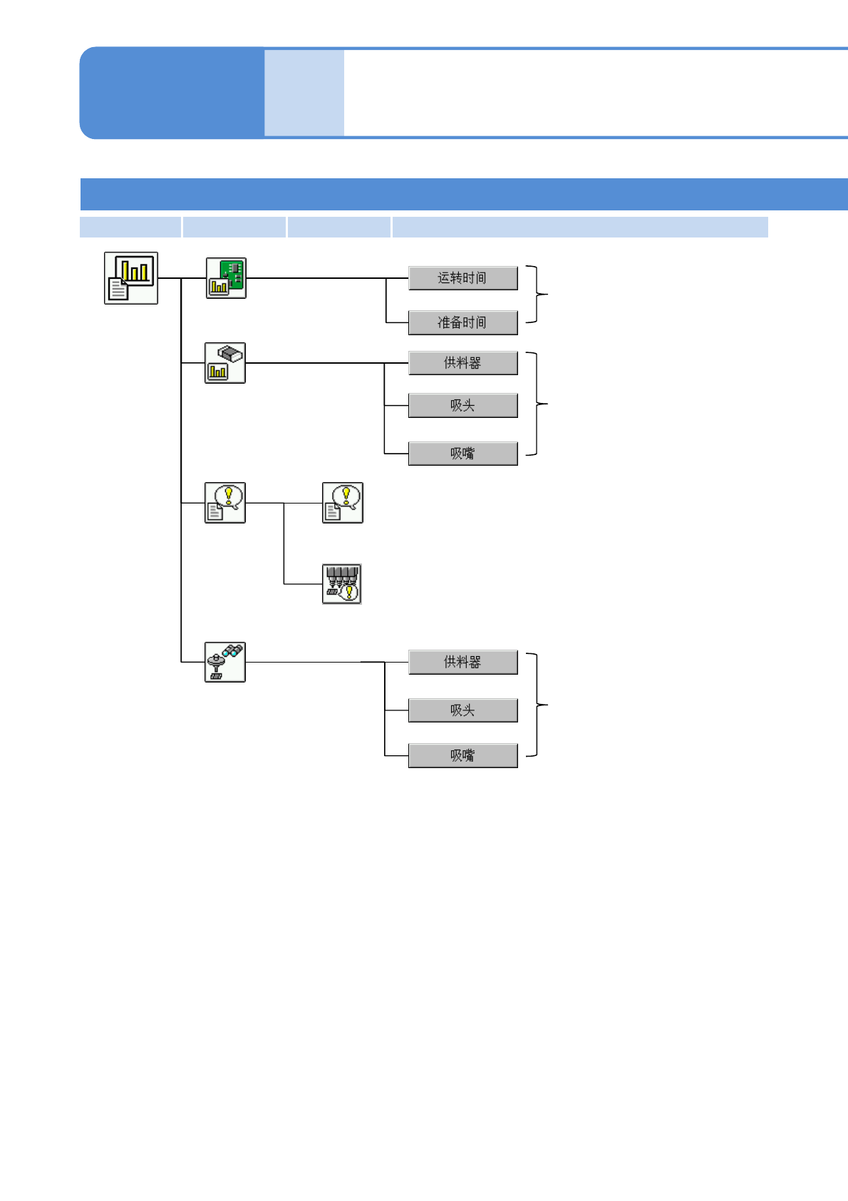 NPM- TT2 EJM1EC-MB-02O-0 4 2-2-2 -4 更换消磨零件 定期检查 确认各周期的检查项目和操作履历。 显示消磨零件的更换信息。 精度验证结果 显示精度验证结果。 维护菜单 XY 单元 进行 XY 单元的维护作业。 贴装头 进行贴装头的维护作业。 进行基板传送的维护作业。 维护作业 托盘 进行托盘供料器的维护作业。 ( 设置托盘供料器时显示 ) 通知 在经过定制设定后的操作模式,可以进行第 1 层的 操作。 传…