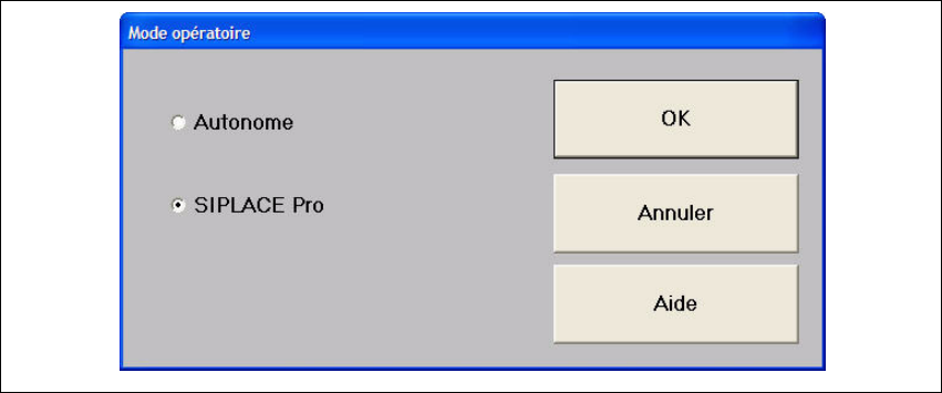La boîte de sélection "Mode opératoire" s’ouvre.