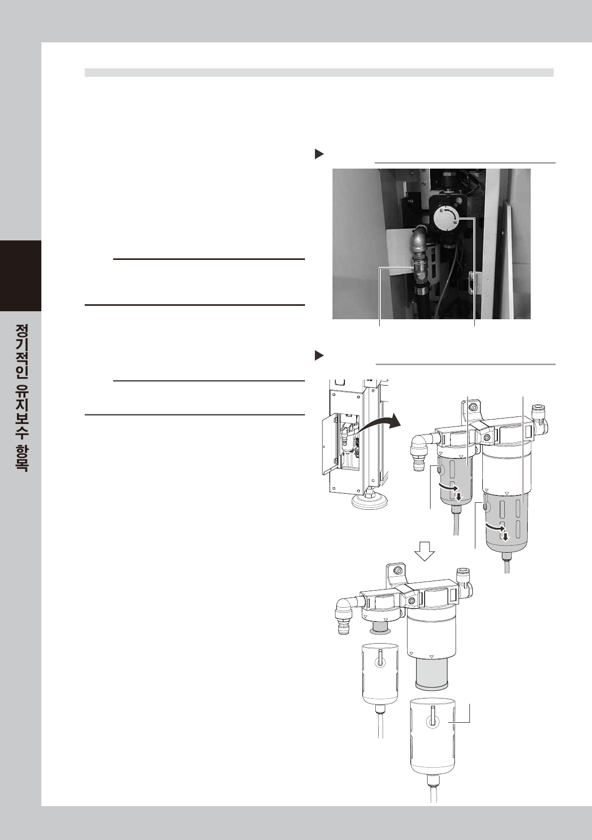 터가 사용되고 있습니다. 이들 필터의 점검과 청소방법 및 내부의 필터 엘리먼트를 교환하는 방법에 대해서