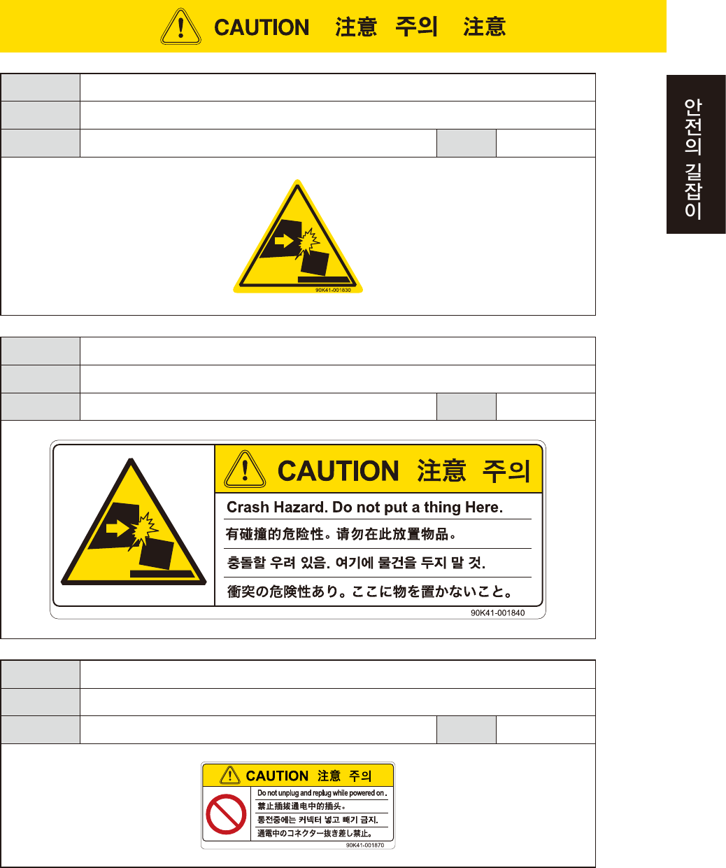 위험의 회피 매뉴얼을 보고 올바른 순서대로 조작해 주십시오 .