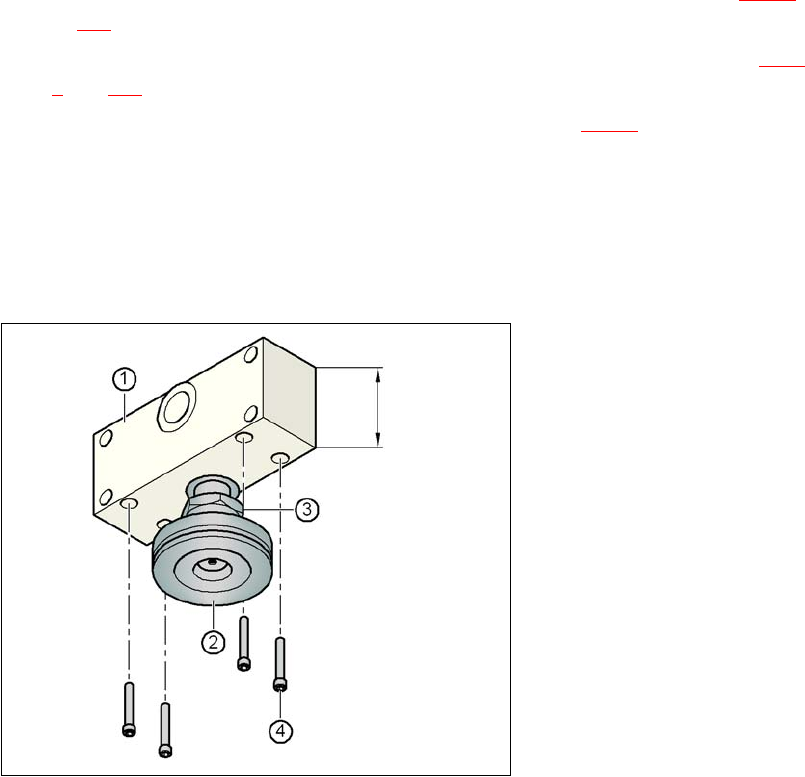 用四颗 M12x80 六角套筒螺丝固定这两个垫块 (参见项目 4,图 4.3 - 6)。使用尺寸为 10