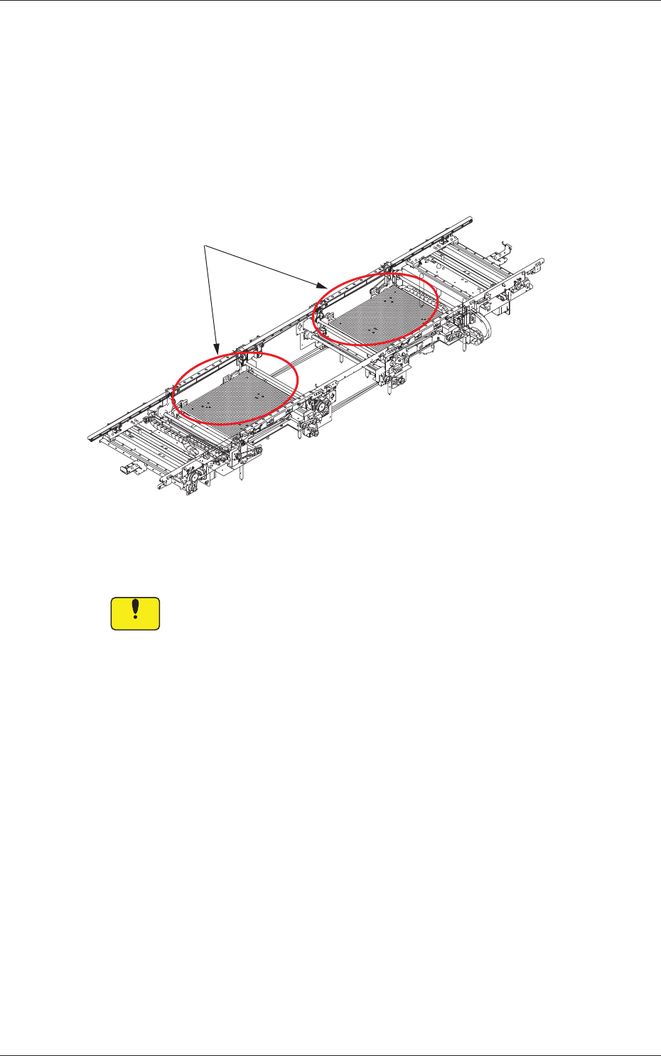 1 - 39 2.4.3 线路板定位部 线路板定位部装备了牢固线路板供给部送来的线路板 ( 线路板定位 ) 的机构。 在线路板定位部,根据线路板程序将安装头移动到已固定的线路板上, 进行元件贴装。 进行机种切换时, 有必要进行线路板支撑销的设置、 传送带宽度的调整。 Fig.1A18 线路板定位部 Notice 请不要在线路板定位部放置异物。 以免导致装置故障。 2.4 进行表面实际贴装的机构 线路板定位部 0708 - 001