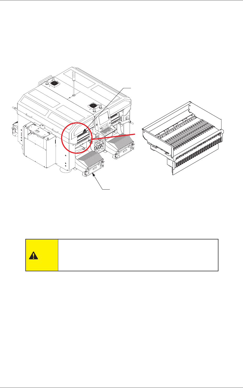 请在送料器安装台完全下降的停止状态下装卸送料器安装台
