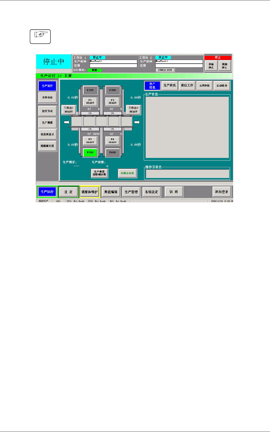 生产运行中可在生产运行主要界面确认运行状态和生产状况。