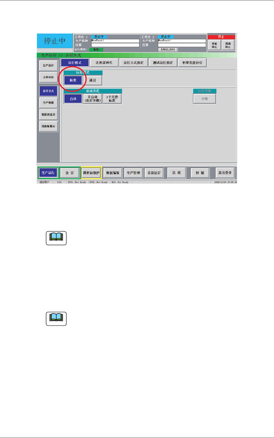 (2) 按下生产主要界面中的 [ 运行方式 ] 按钮。