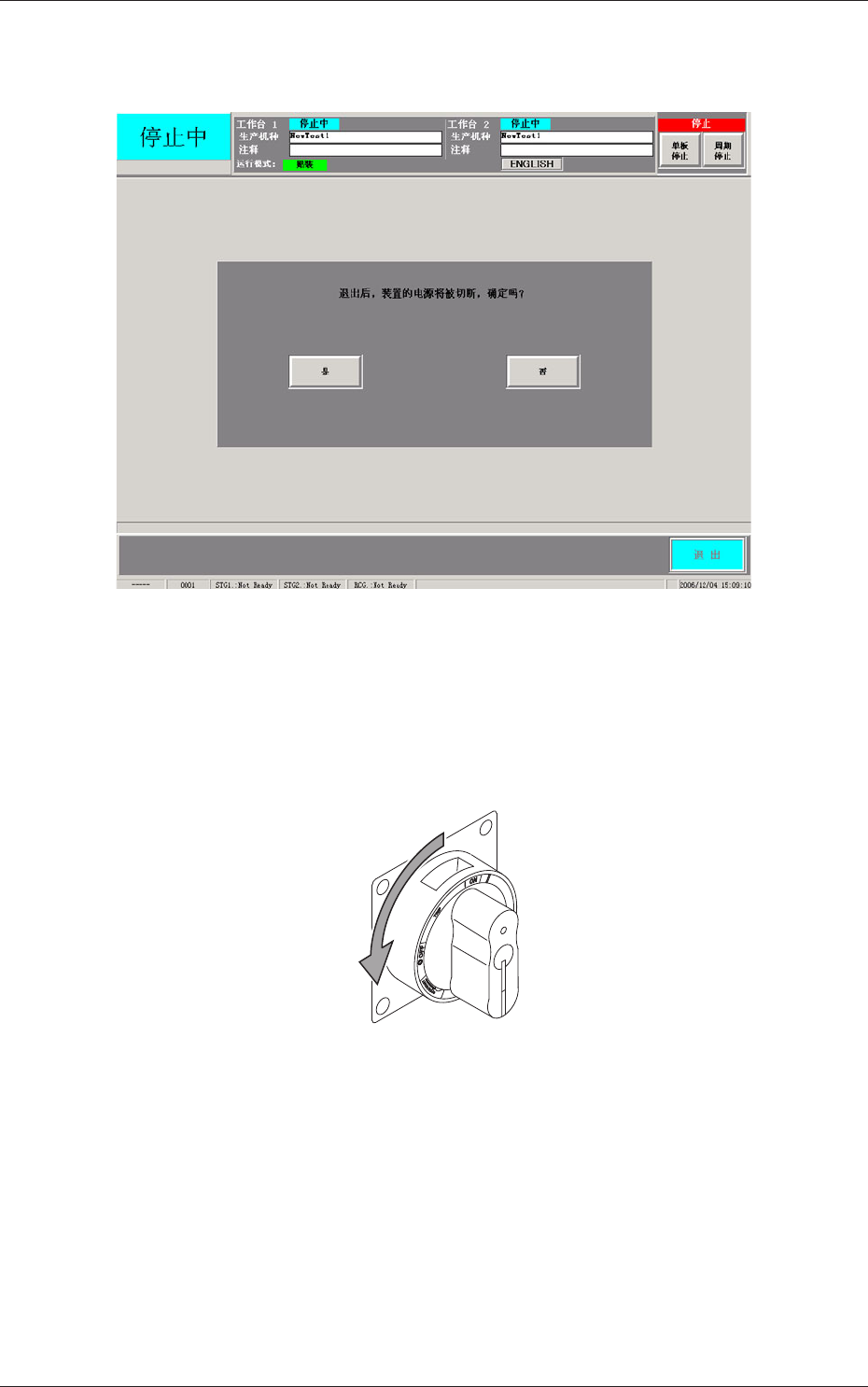 (3) 按 [ 是 ] 按钮,进行退出处理后切断装置电源。