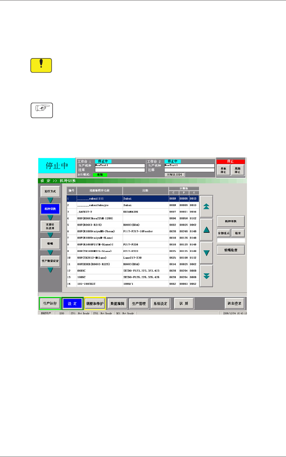 (1) 在 [ 设定 ] 菜单的“机种切换”界面中,选择适当的线路板
