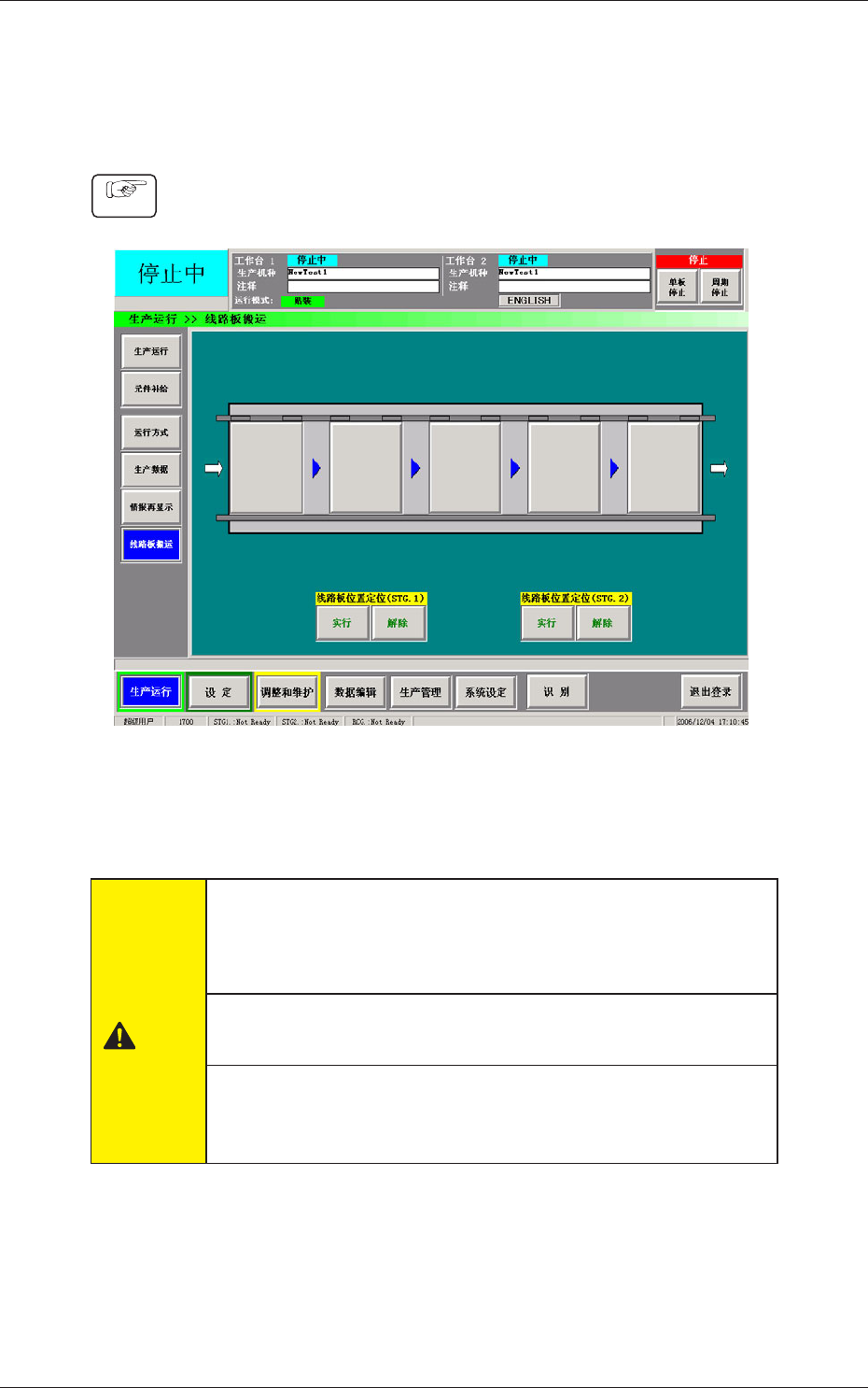 (1) 按“生产运行”菜单的 [ 线路板搬运 ] 按钮,显示“线路板搬运”