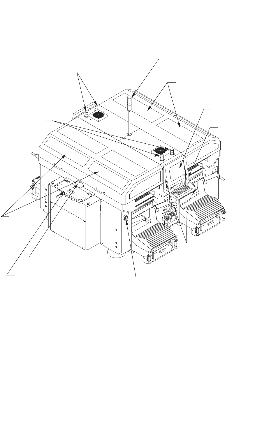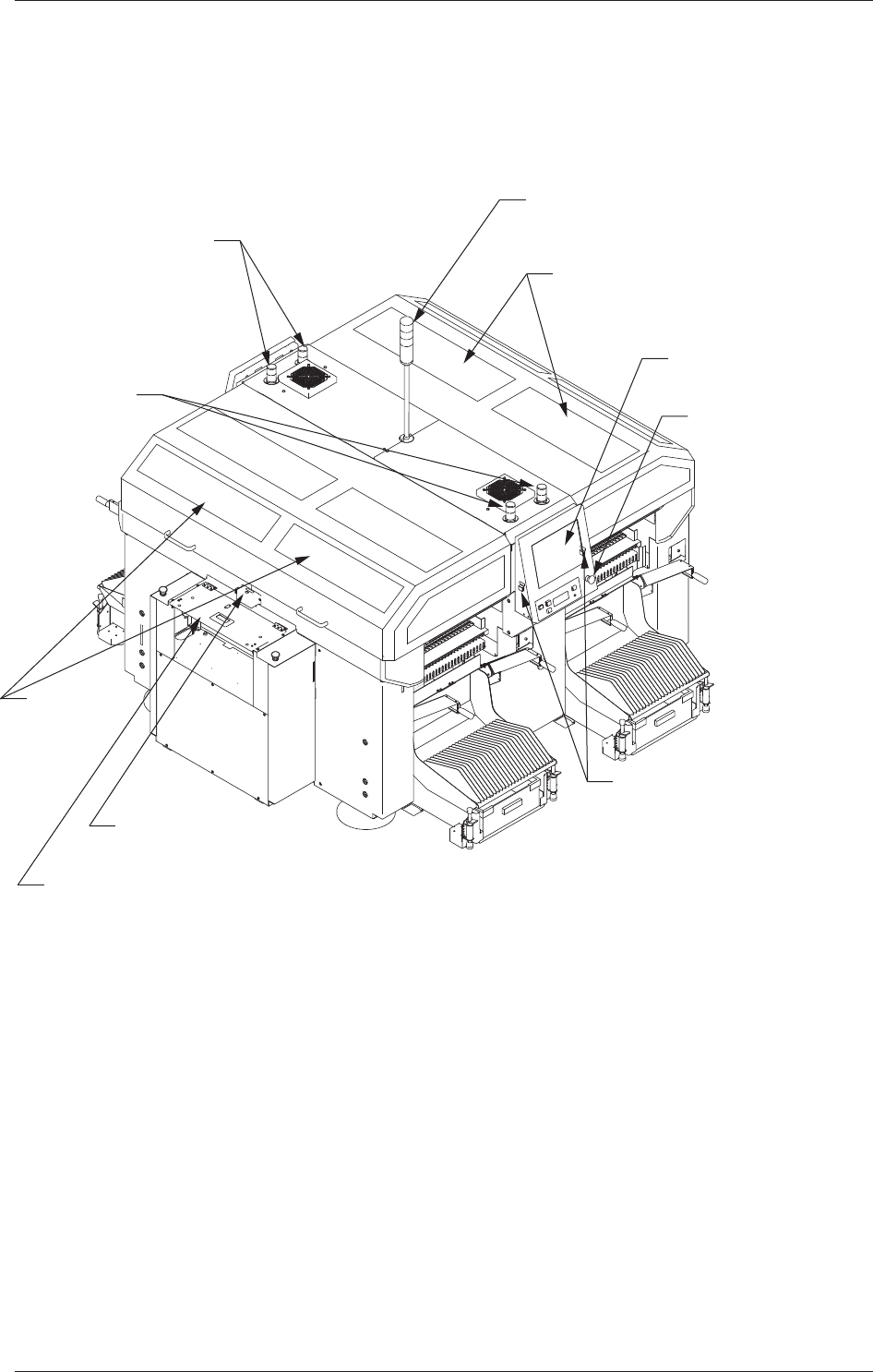 1 - 5 2.1 装置外观 Fig.1A2-2 装置外观 ( 背面 ) 0708 - 001 (2.2.1) [送料器准备完了]开关 背面操作台 [紧急停止]按钮 (2.2.2) 开闭门 塔灯 辅助灯 辅助灯 开闭门 (2.2.3) (2.3.3) (2.3.3) (2.3.2) (2.2.3) (2.3.4) [工作台准备完了] 开关 (2.2.2) 供给排出传送带盖