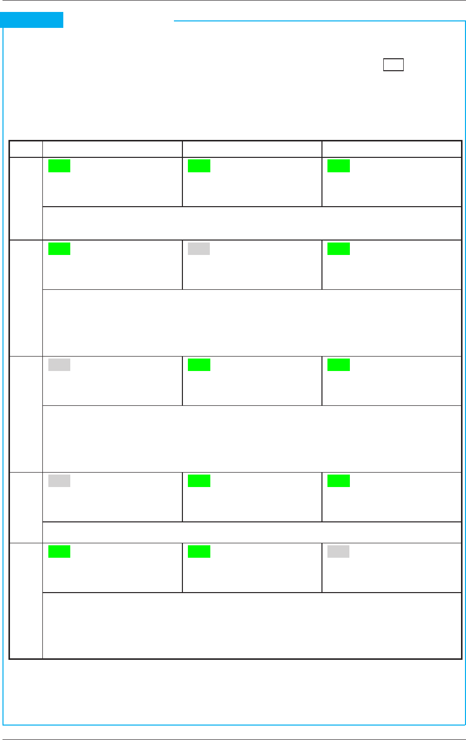 一览说明各开关的“亮灯 / 灭灯”状态组合及装置状态。( 表中