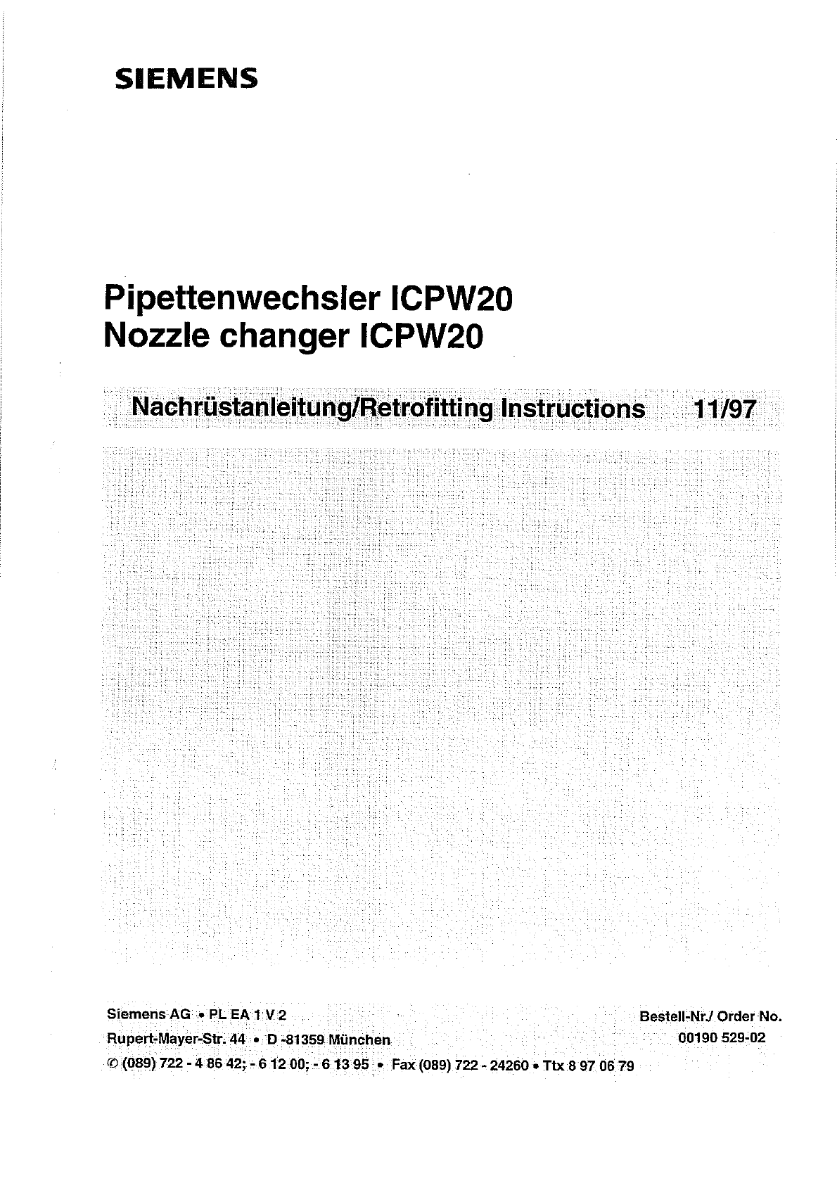 SIEMENS Pipettenwechsier ICPW 20 Nozzle changer ICPW 20 Nachriistanleitung / Retrofitting Instructions 11 / 97 Siemens AG • PL EA 1 V 2 Bestell - Nri Order No . 00190 529 - 02 Rupert - Mayer - Str . 44 • D - 81359 Miinch…
