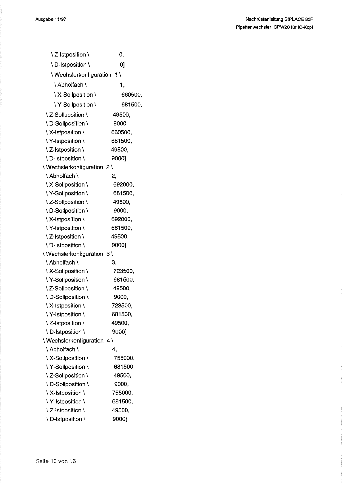Nachrustanleitung SIPLACE 80 F Pipettenwechsler ICPW 20 fur IC - Kopf Ausgabe 11 / 97 1.7 . 4 Real . ma fur Pipettenwechsler ICPW 20 • Geben Sie die X , Y , Z und D Sollpositionen fur den Pipettenwechsler ICPW 20 und die…