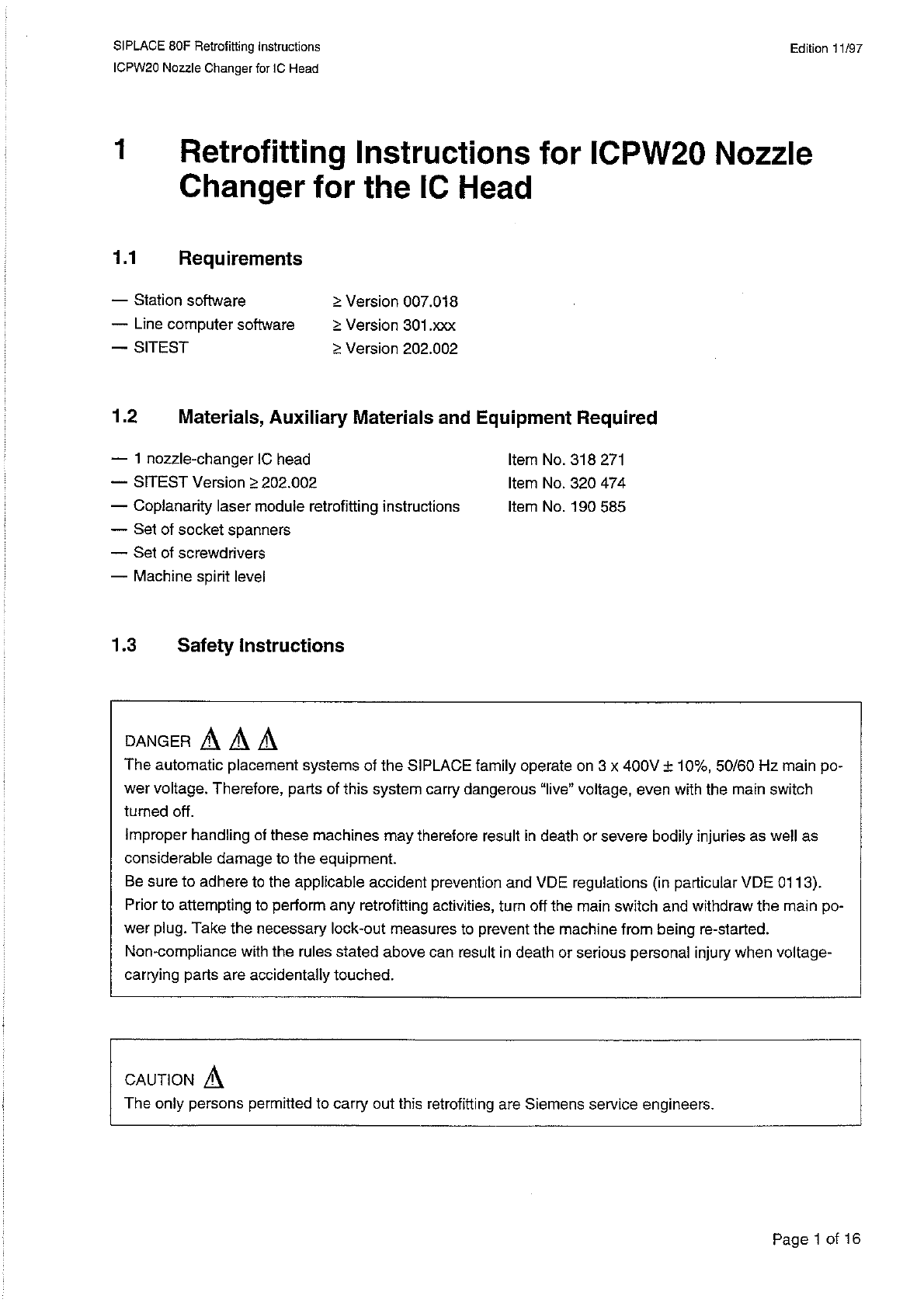 Edition 11 / 97 SI PLACE 80 F Retrofitting Instructions ICPW 20 Nozzle Changer for IC Head 1.3 . 1 Definitions Qualified or adequately trained personnel : Persons who are familiar with setting up , operating and maintain…