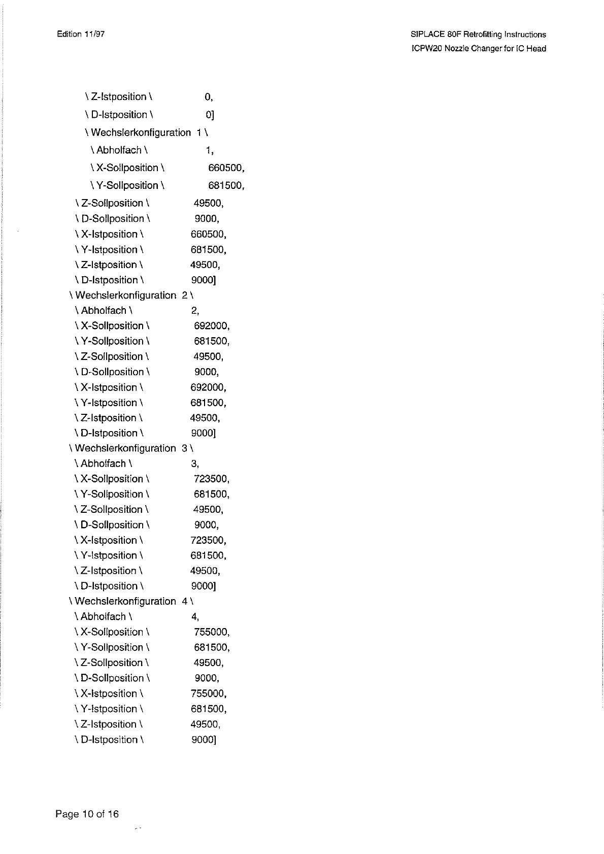 SI PLACE 80 F Retrofitting Instructions ICPW 20 Nozzle Changer for 1 C Head Edition 11 / 97 \ Wechslerkonfiguration 5 \ \ Abholfach \ \ X - Sollposition \ \ Y - Sollposition \ \ Z - Sollposition \ \ D - Sollposition \ \ …