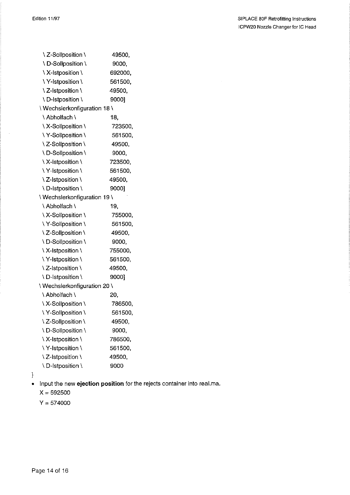SI PLACE 80 F Retrofitting Instructions ICPW 20 Nozzle Changer for 1 C Head Edition 11 / 97 \ Wechslerkonfiguration 13 \ \ Abholfach \ \ X - Sollposition \ \ Y - Sollposition \ \ Z - Sollposition \ \ D - Sollposition \ \…