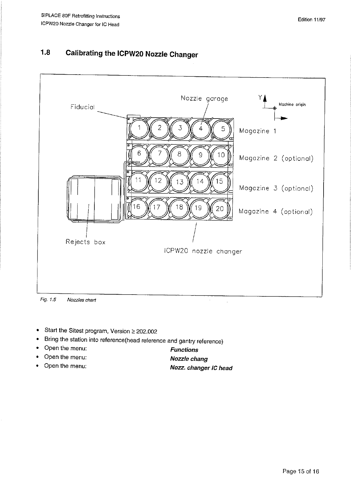 Edition 11 / 97 SIPLACE 80 F Retrofitting Instructions ICPW 20 Nozzle Changer for ! C Head \ Z - Sollposition \ \ D - Sollposition \ \ X - lstposition \ \ Y - lstposition \ \ Z - lstposition \ \ D - lstposition \ \ Wechs…