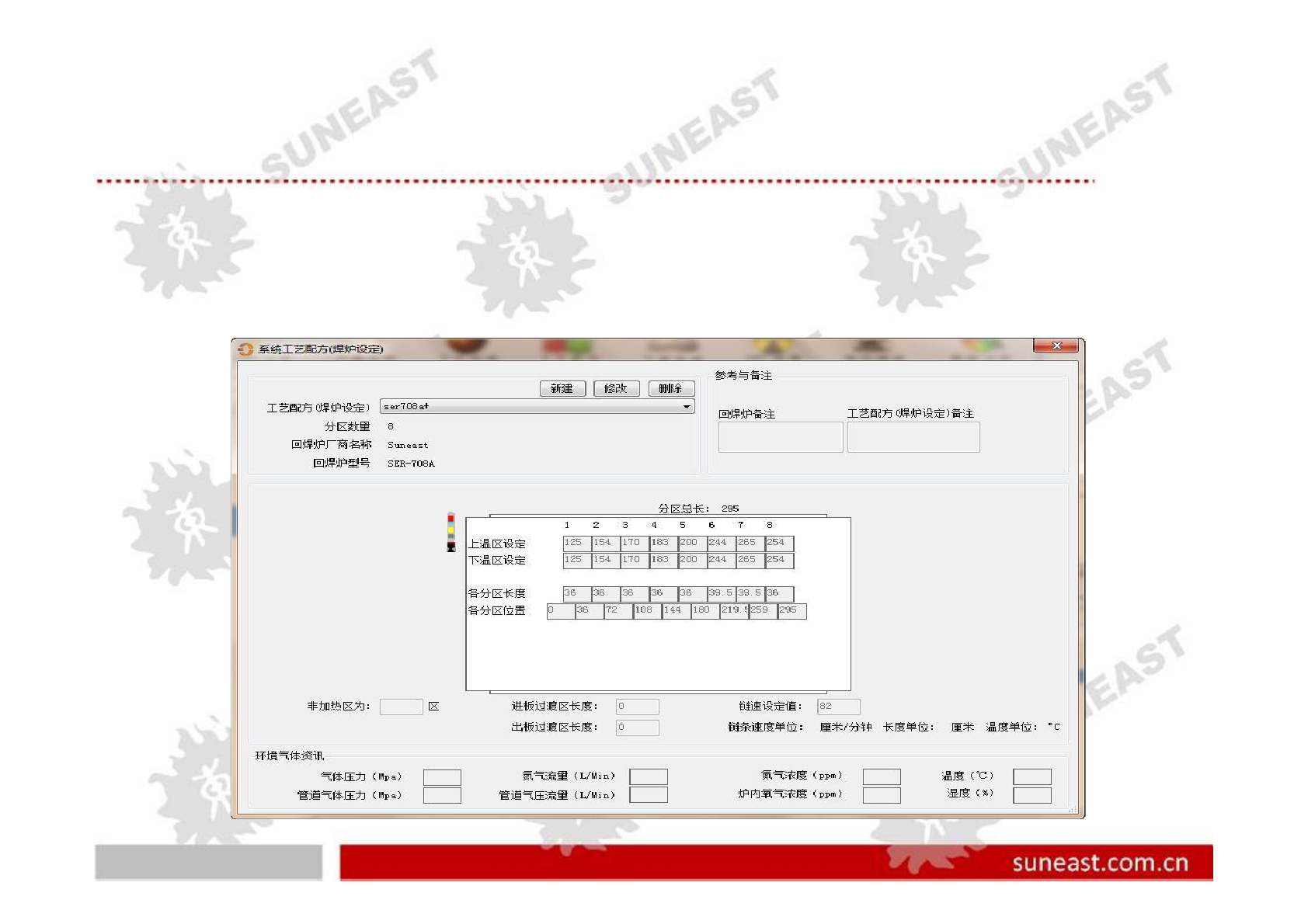 suneas t.co m.cn 参数设 定 P a r a m e t e r s e t t i n g • SER-708A 系列温 度设定 • 传输速度 Con veyor speed 82 CM/MIN • 马达频率 M oto r fr equency 40HZ 24